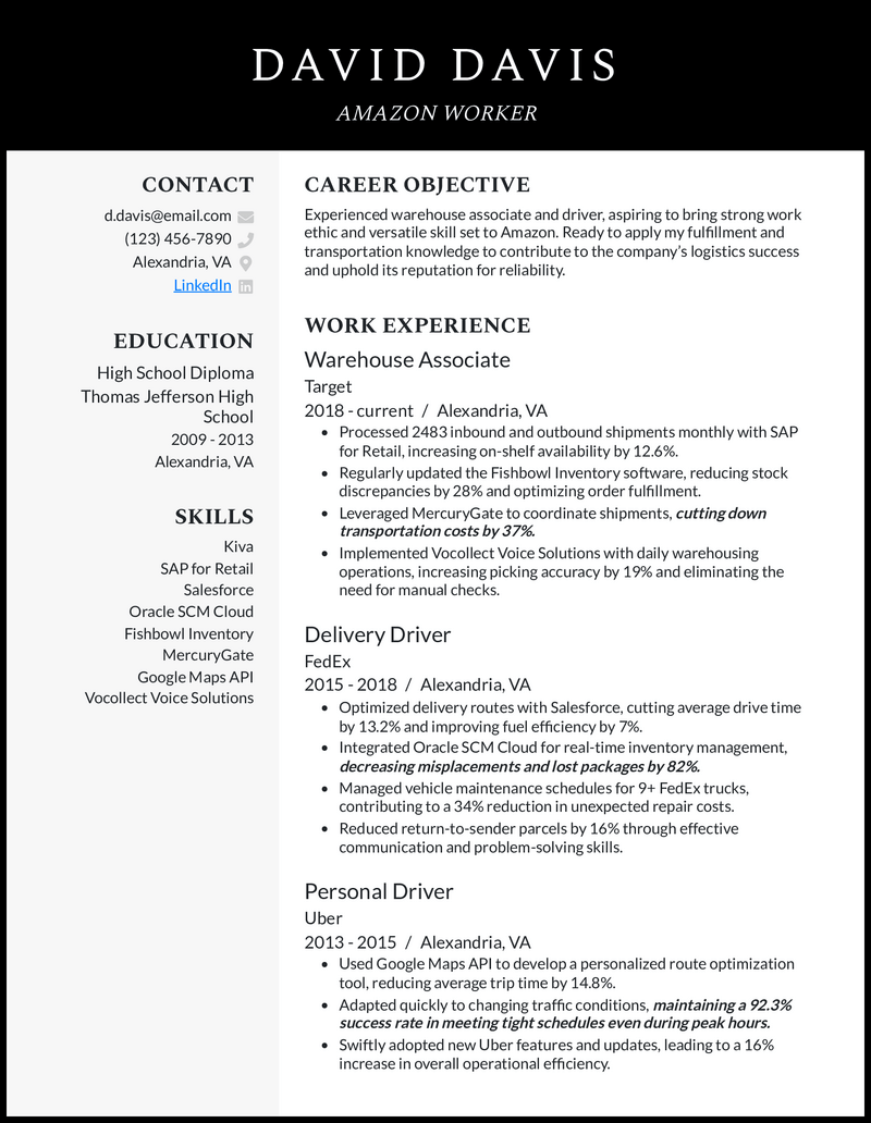 21 Amazon Associate Resume Examples & Writing Guide 2025