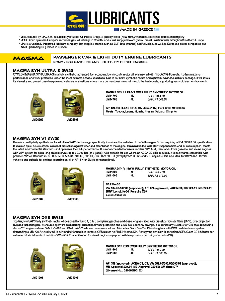 Catalog Lubricants II Cyclon P21 06 February 9 2021 W SRP PDF Motor