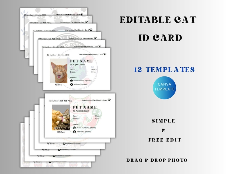 Editable Cat ID Card Pet Identification Missing Cat Dog Etsy