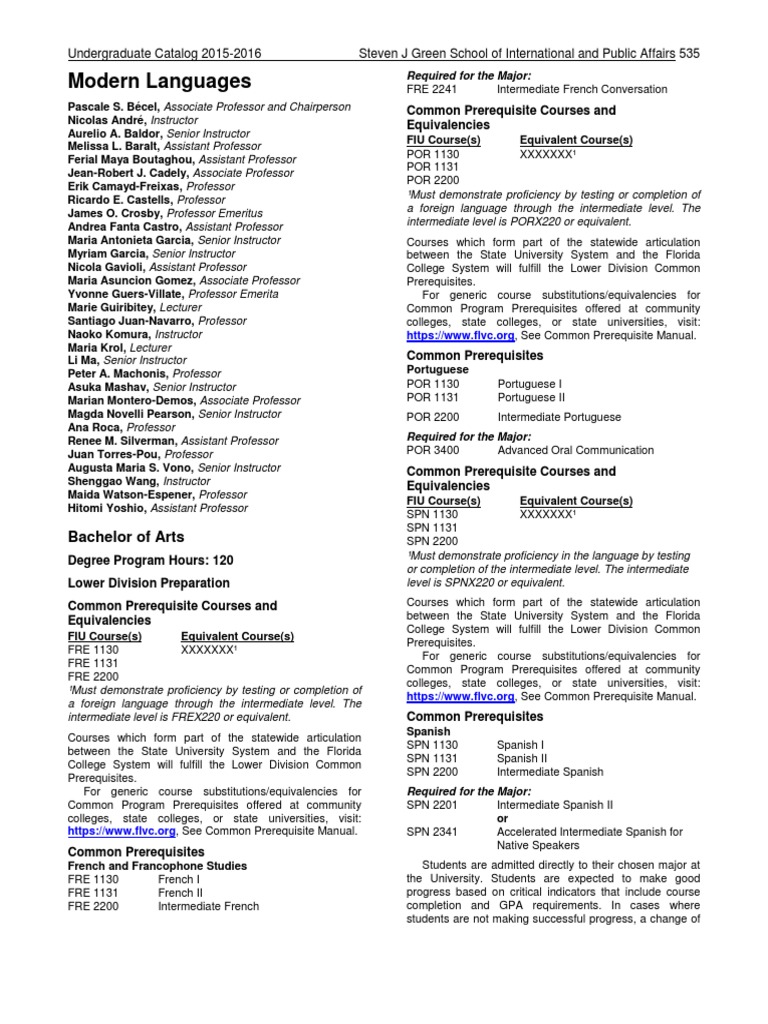 Undergraduate Catalog 20152016 Modern Languages Majors PDF