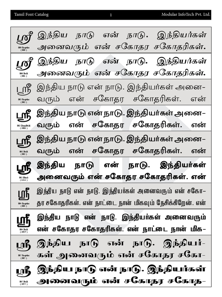Tamil Font Catalog Modular Infotech Pvt. Ltd. 1 800 Regular (800