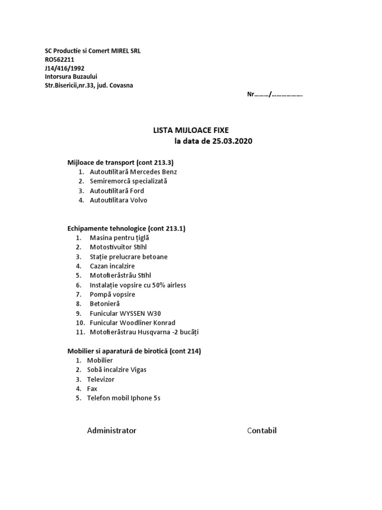 Lista Mijloace Fixe PDF