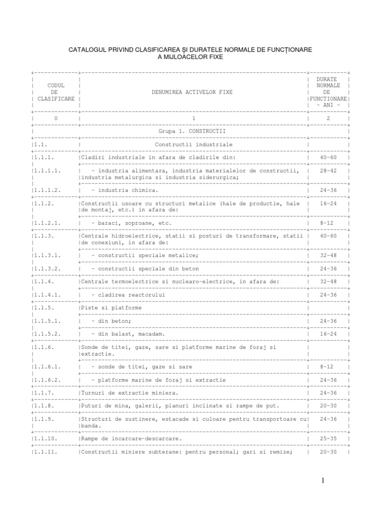 (DOC) Catalogul privind clasificarea si duratele normale de functionare