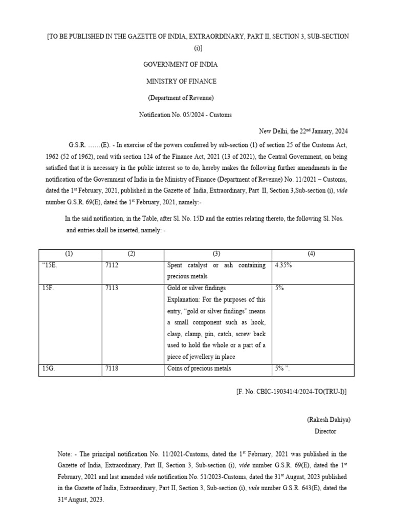 CBICCUS TARIFF NOTFN NO.05 DT.22.01.2024Seeks To Amend Notification