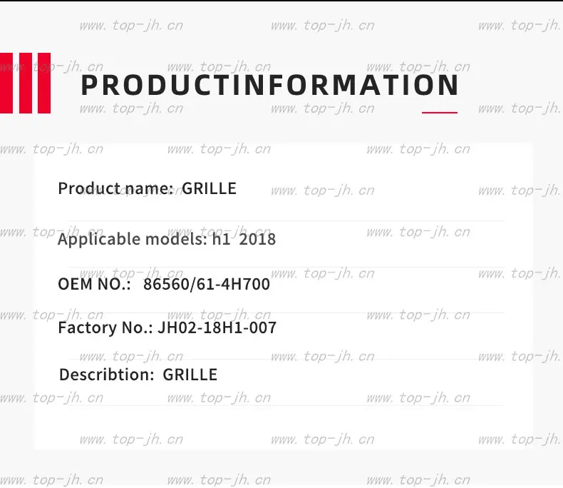 Carval Jh Body Parts Auto Lamps Grille For H1 2018 Auto Bumpers 86560/