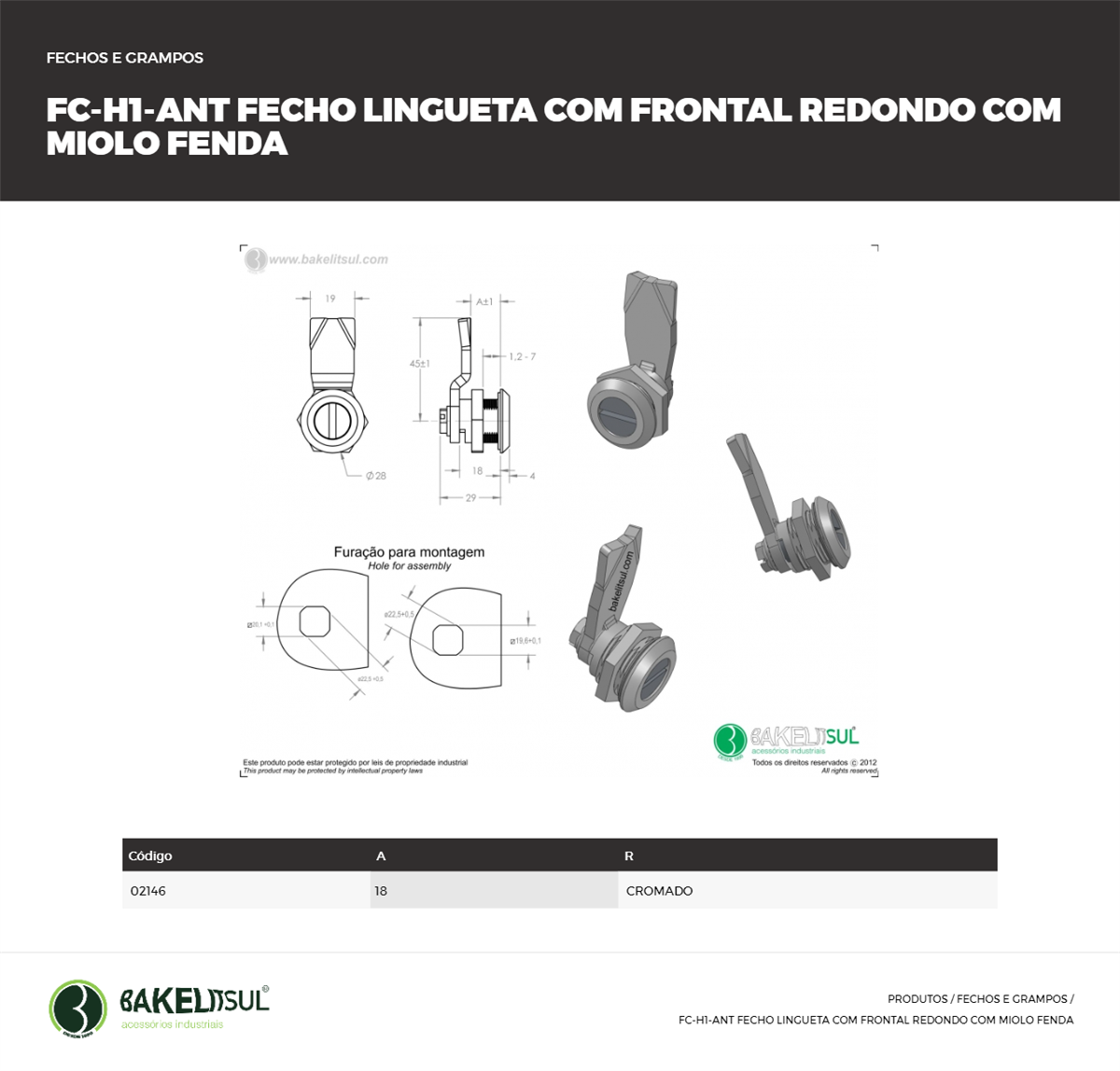 FECHO LINGUETA METÁLICO MIOLO FENDA FCH1 Bakelitsul