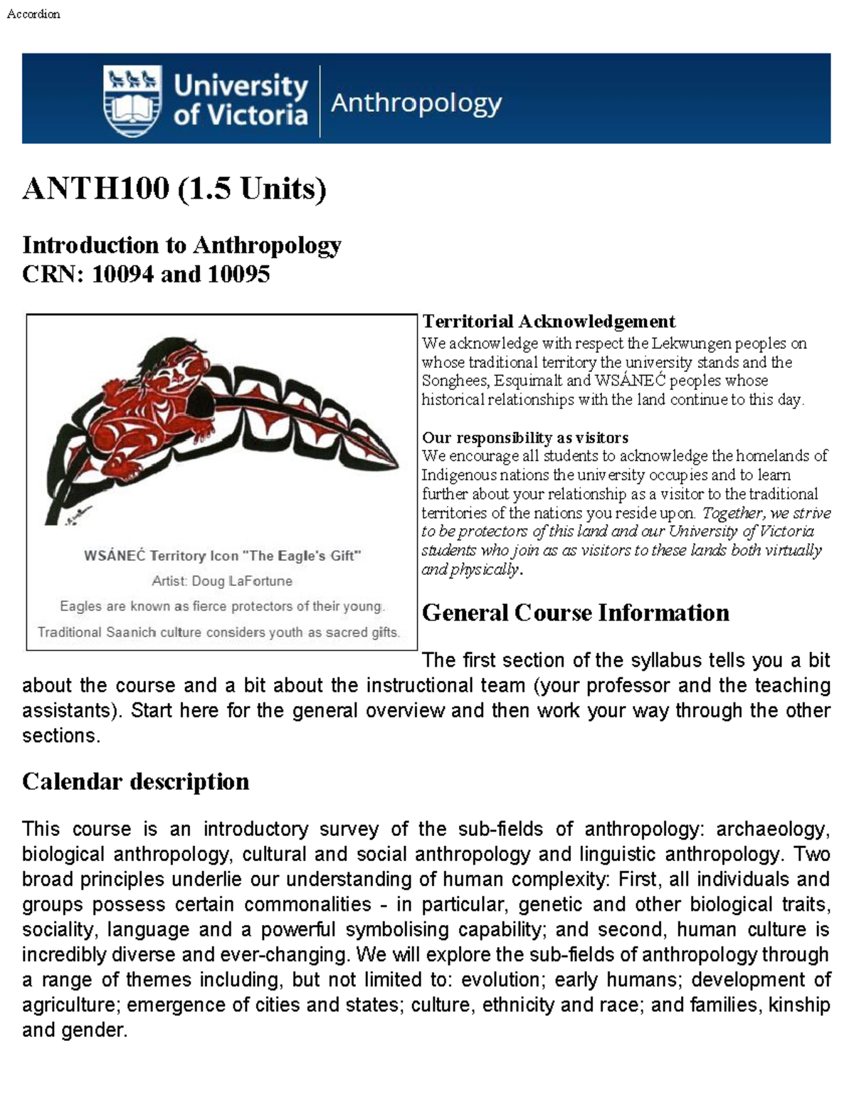 ANTH 100 Introduction to Anthropology ANTH 100 Introduction to