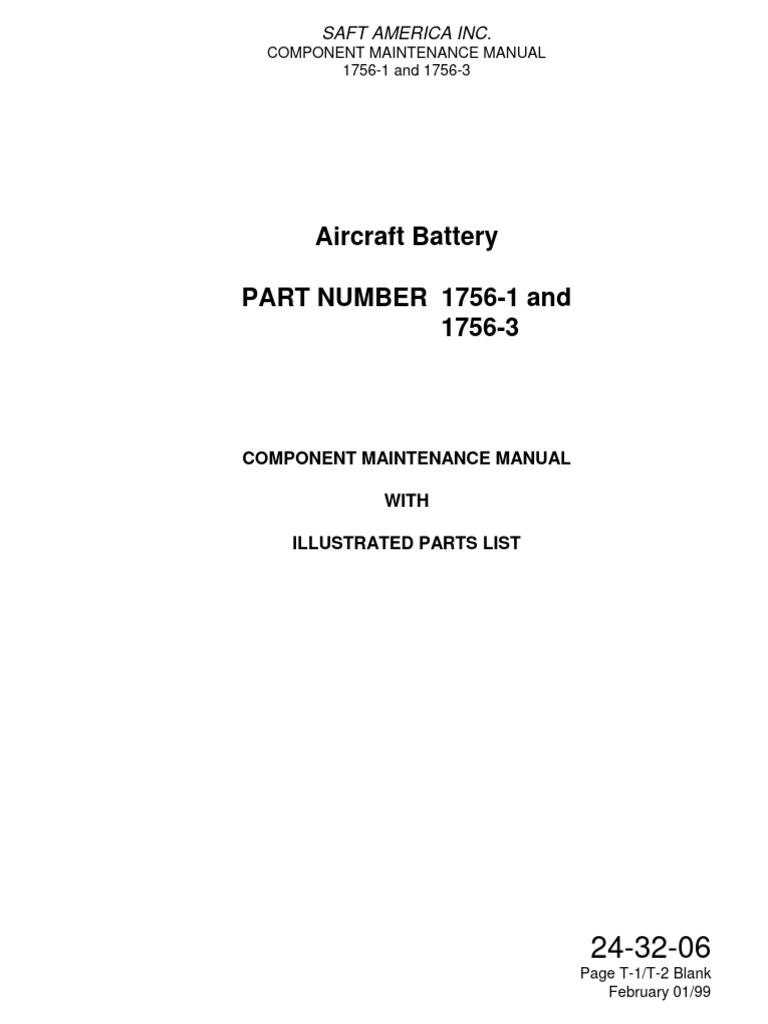 Aircraft Battery PART NUMBER 17561 and 17563 Saft America Inc PDF