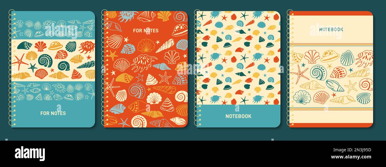 Sea shell sink trendy notepad cover set. Notebook with nautical snail