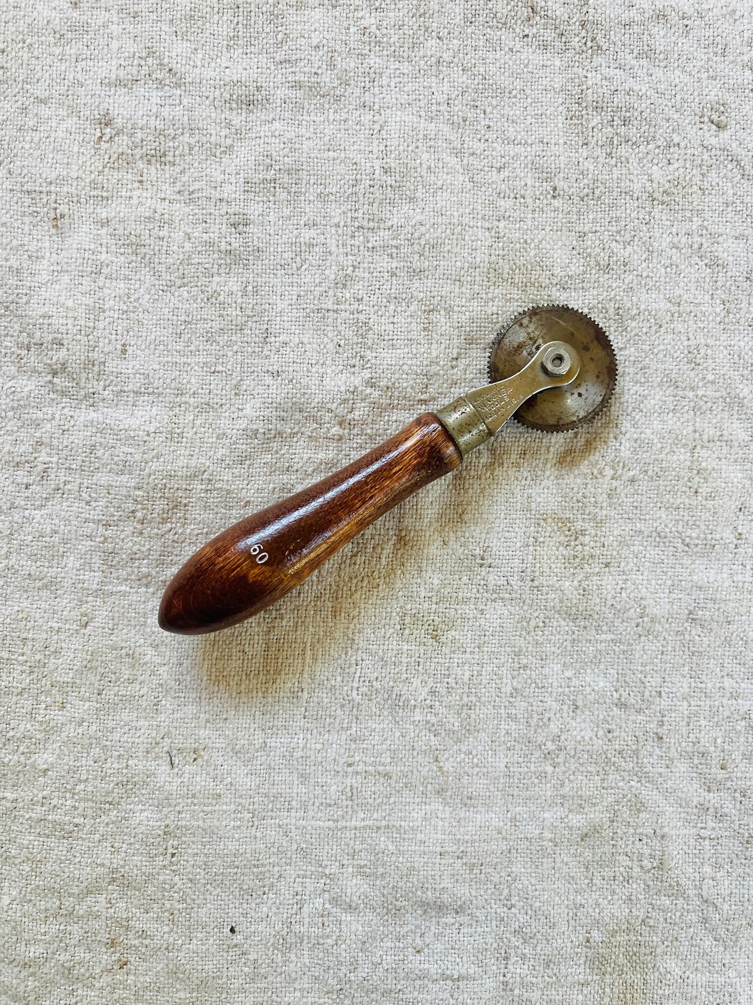 Rare Vintage Accuracy Warner Tools USA Wood Handle Serrated Knife Wheel