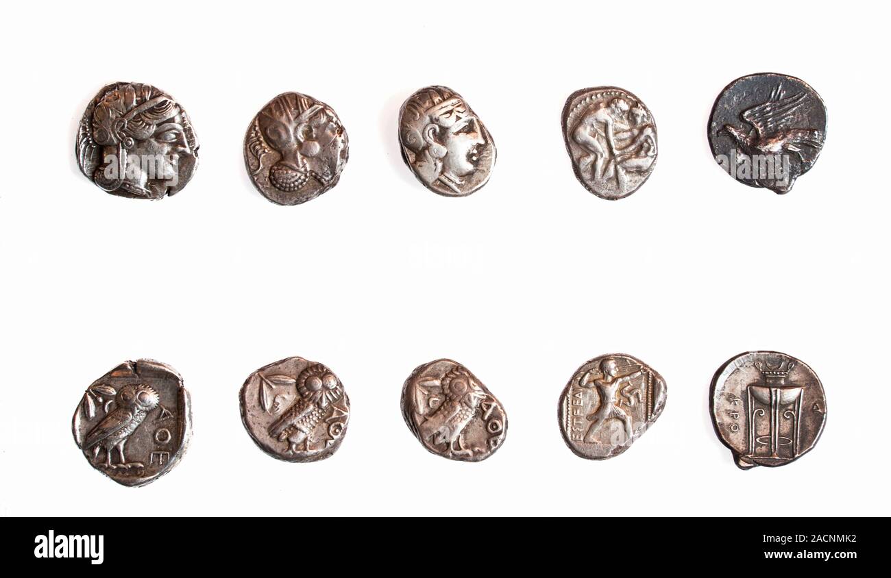 Ancient Greek coins 3rd 4th century BCE. Left to right. 1. Athena 5th