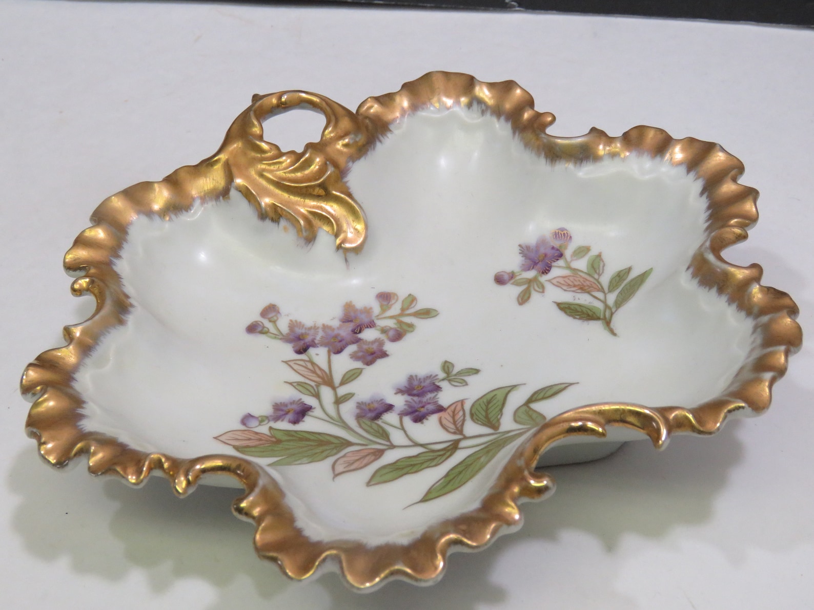 Vintage ARNART JAPAN Gilt Porcelain Leaf Shaped Dish W/ Hand Painted