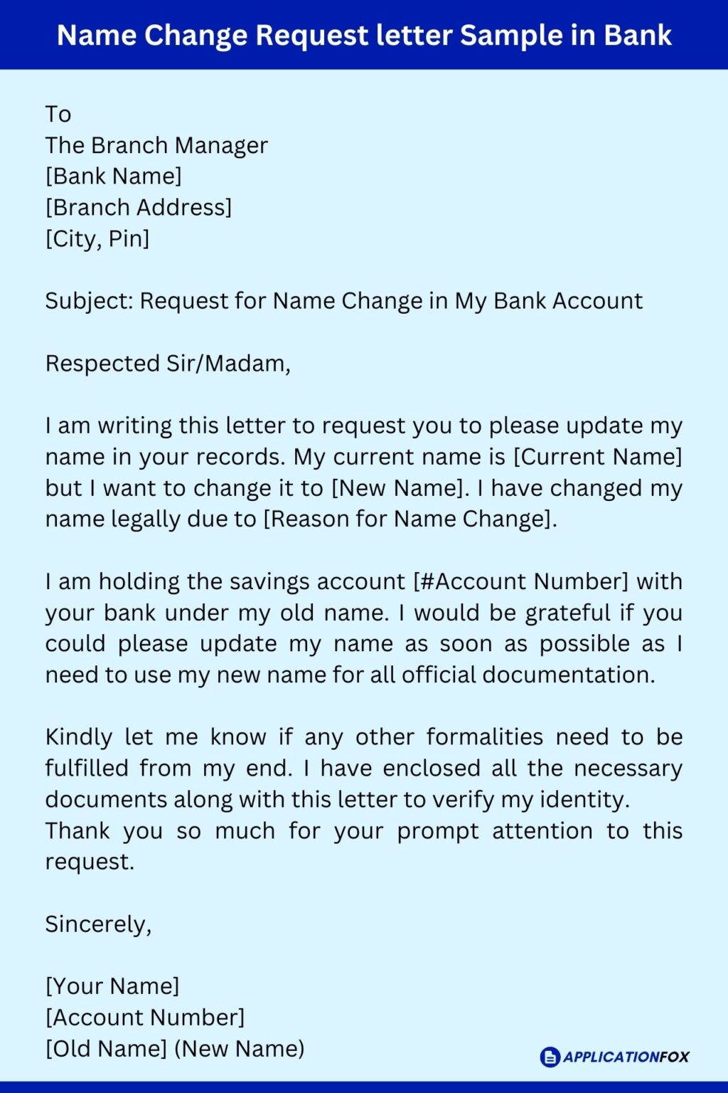 Letter Template For Bank Account Name Change Free Samples in PDF