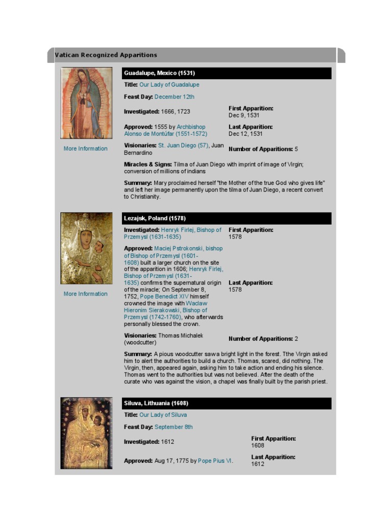 16 VaticanApproved Marian Apparitions, including the most recent one