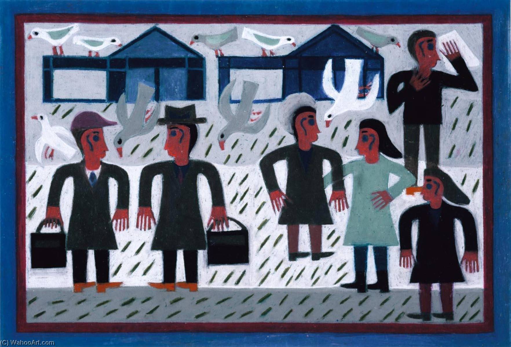Artwork Replica Six Figures with Pigeons and Buildings, 1970 by Eddie