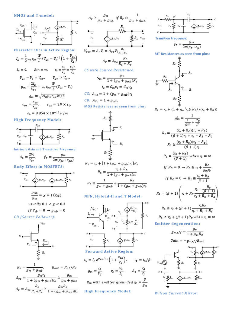 EE336 Cheat Sheet PDF Digital Electronics Electrical Circuits