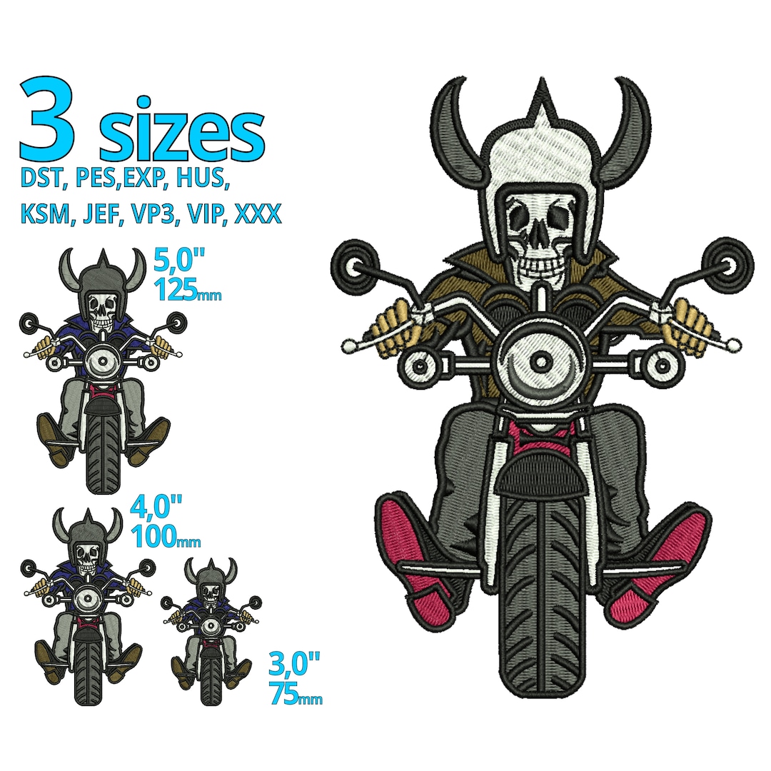 Viking Biker Embroidery Design 3 Sizes Biker Machine Embroidery File