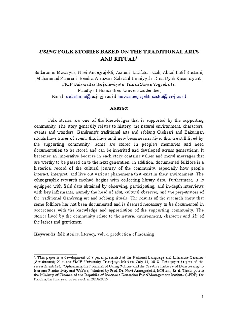 Using Folk Stories Based On The Traditional Arts and Ritual PDF