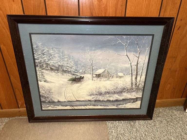 Signed Fred Thrasher Winter Scene Print Framed Ford Brothers, Inc.