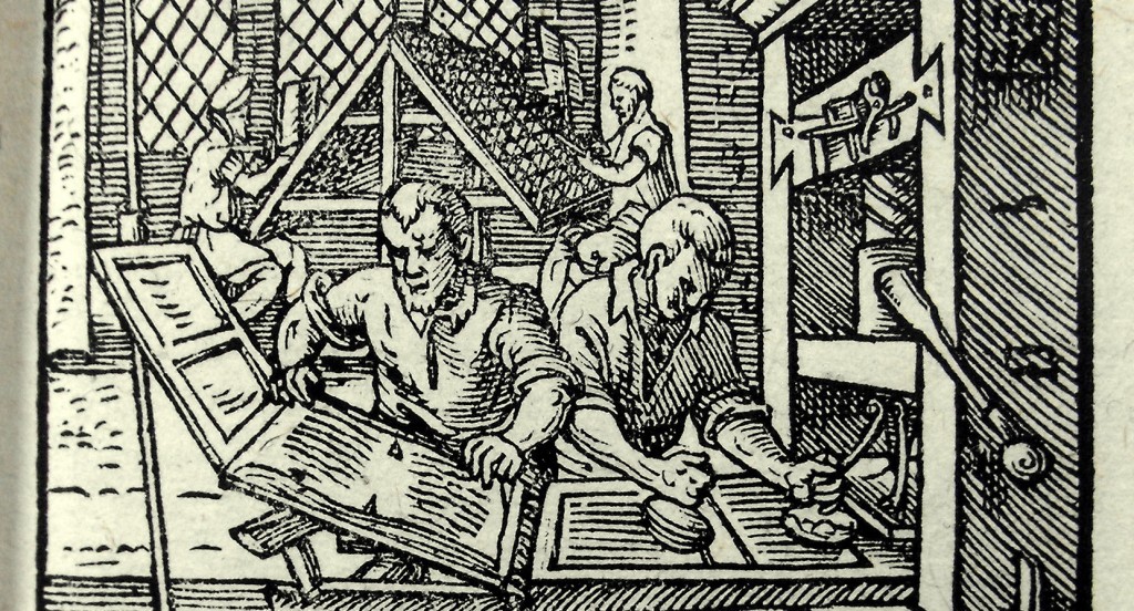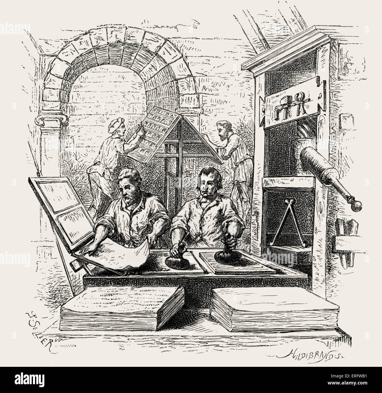 Printer with printing press. Renaissance period Stock Photo Alamy