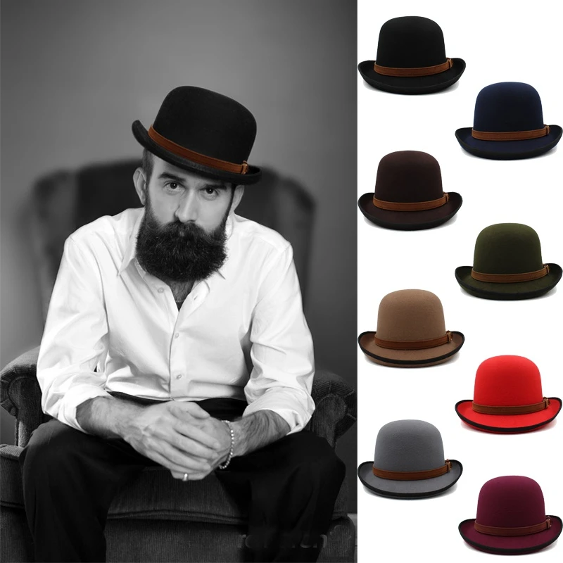 Men Women Wool Blend Oval Top Bowler Hats Woolen Fedora Caps Trilby