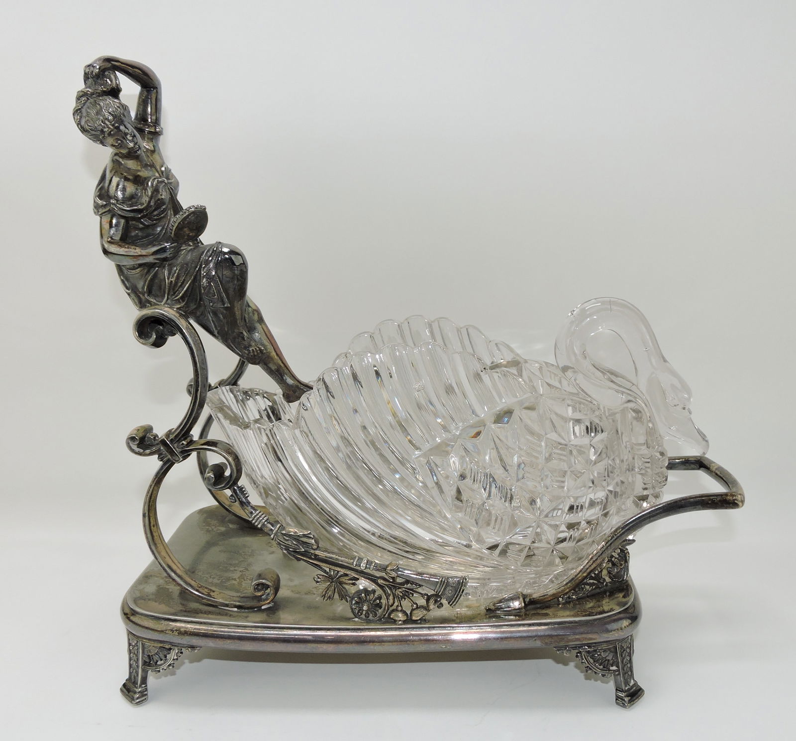 Victorian English Cameo Glass Meriden Silverplate Brides Bowl