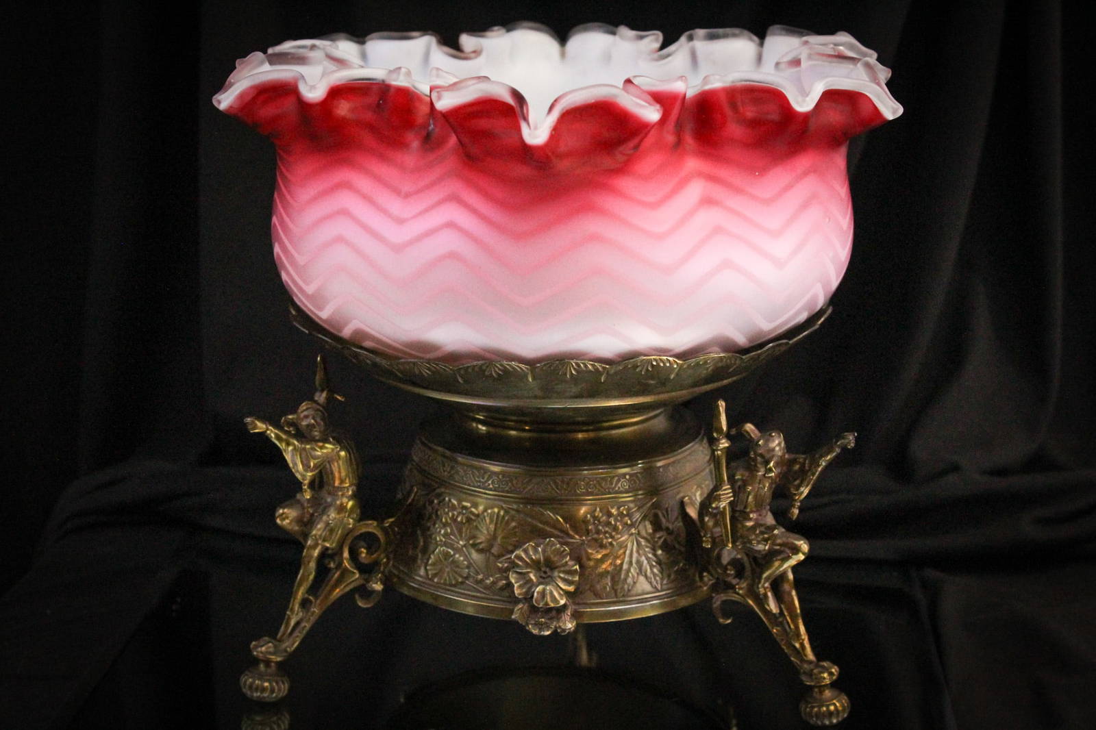Victorian Satin Glass Center Bowl or "Bride's Basket" with Cherub Stand