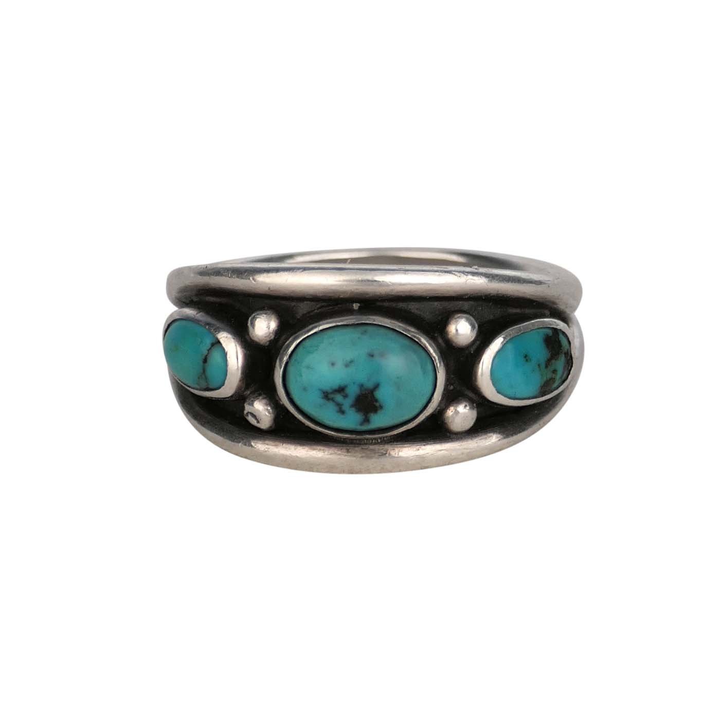 Navajo UITA 12 Silver Ring with Three Turquoise Cabochon, c.1950