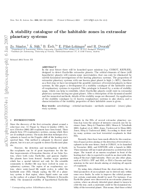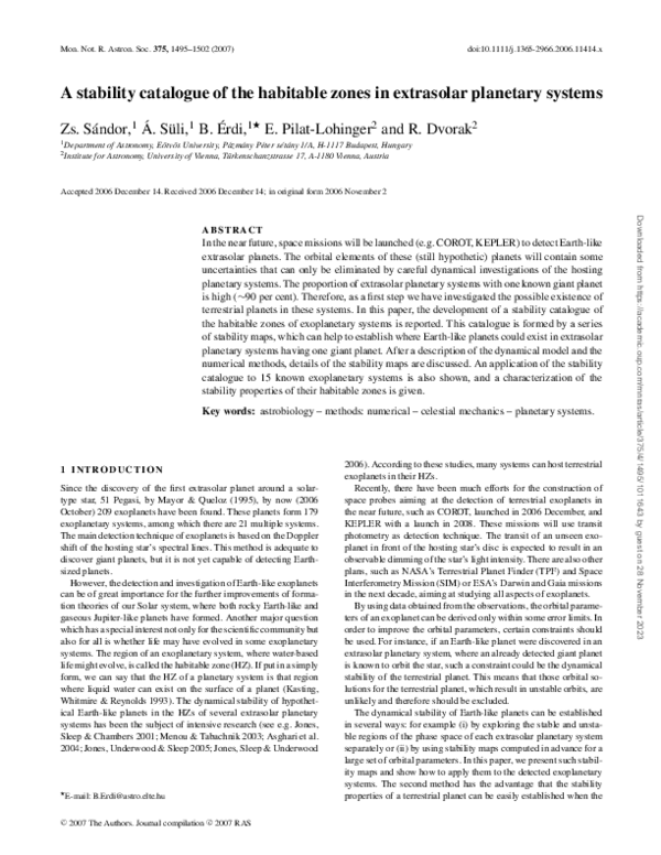 (PDF) A stability catalogue of the habitable zones in extrasolar