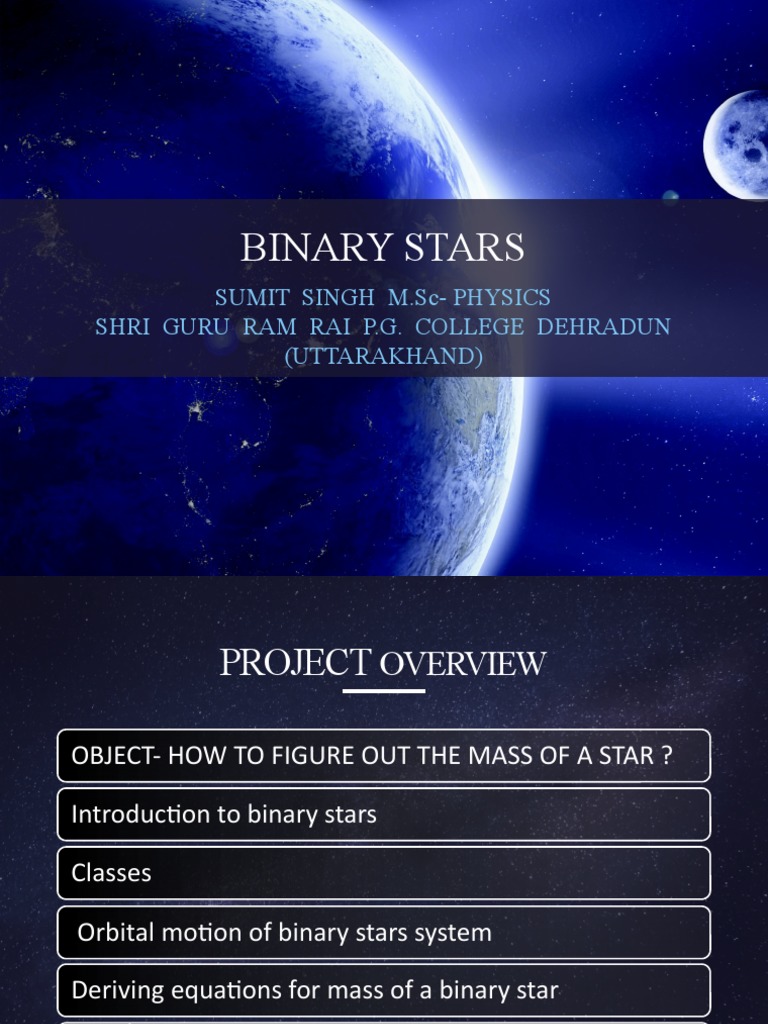 Binary Stars Sumit Singh M.ScPhysics Shri Guru Ram Rai P.G. College