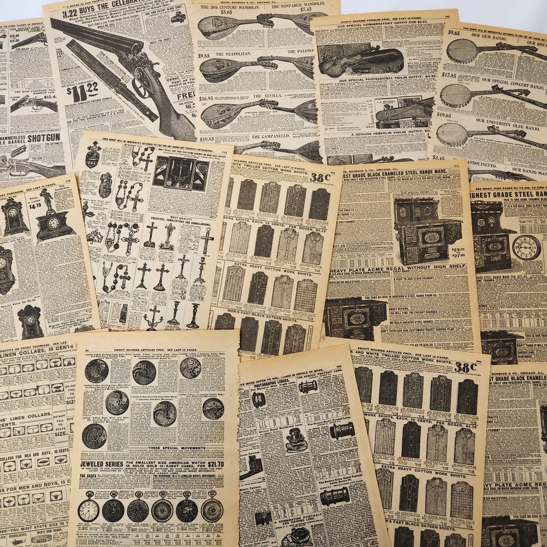 20 Small Sheets 1909 Sears Roebuck Catalogue Pages Book Craft Paper
