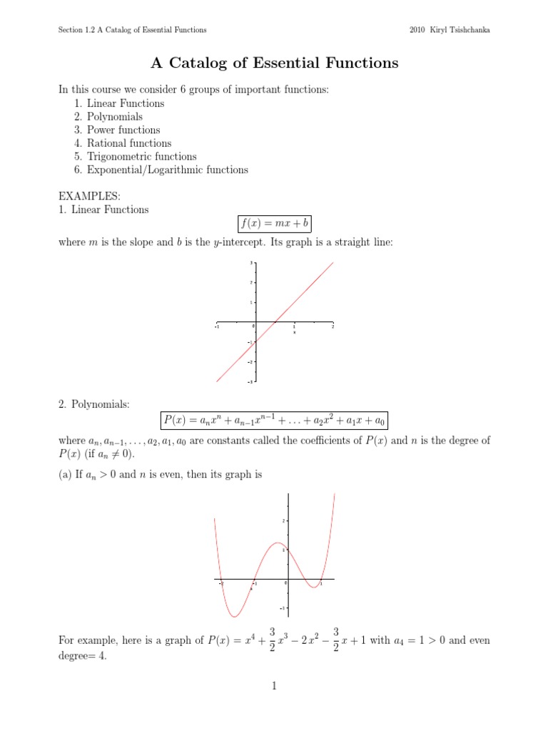 A Catalog of Essential Functions PDF Function (Mathematics