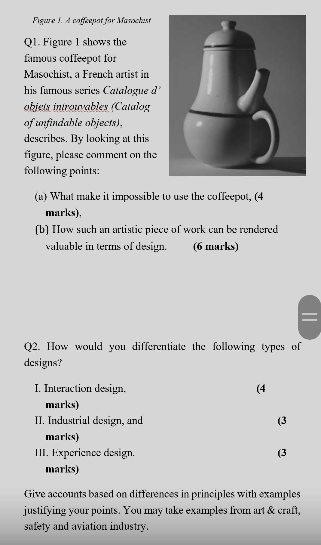 Solved Figure 1. A coffeepot for Masochist Q1. Figure 1