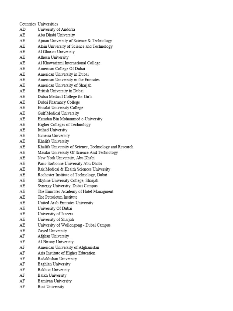 Catalog Of World University Addresses Database