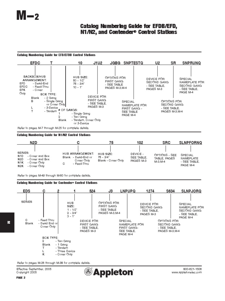 Catalog Numbering Guide For EFDB/EFD, N1/N2, and Contender Control