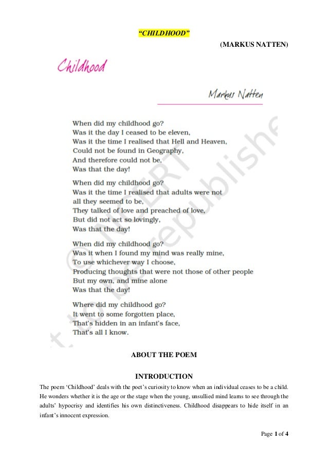 Childhood Poem Summary in English by Markus Natten Childhood Poem