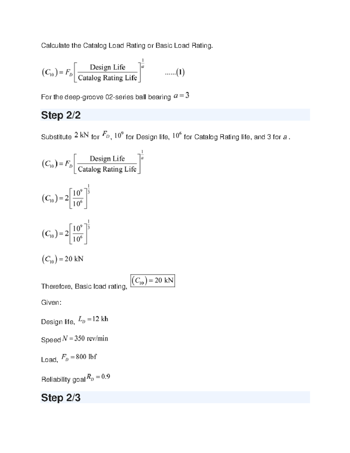 Bearings Reliability Catalogue Load Rating with Reliability Example