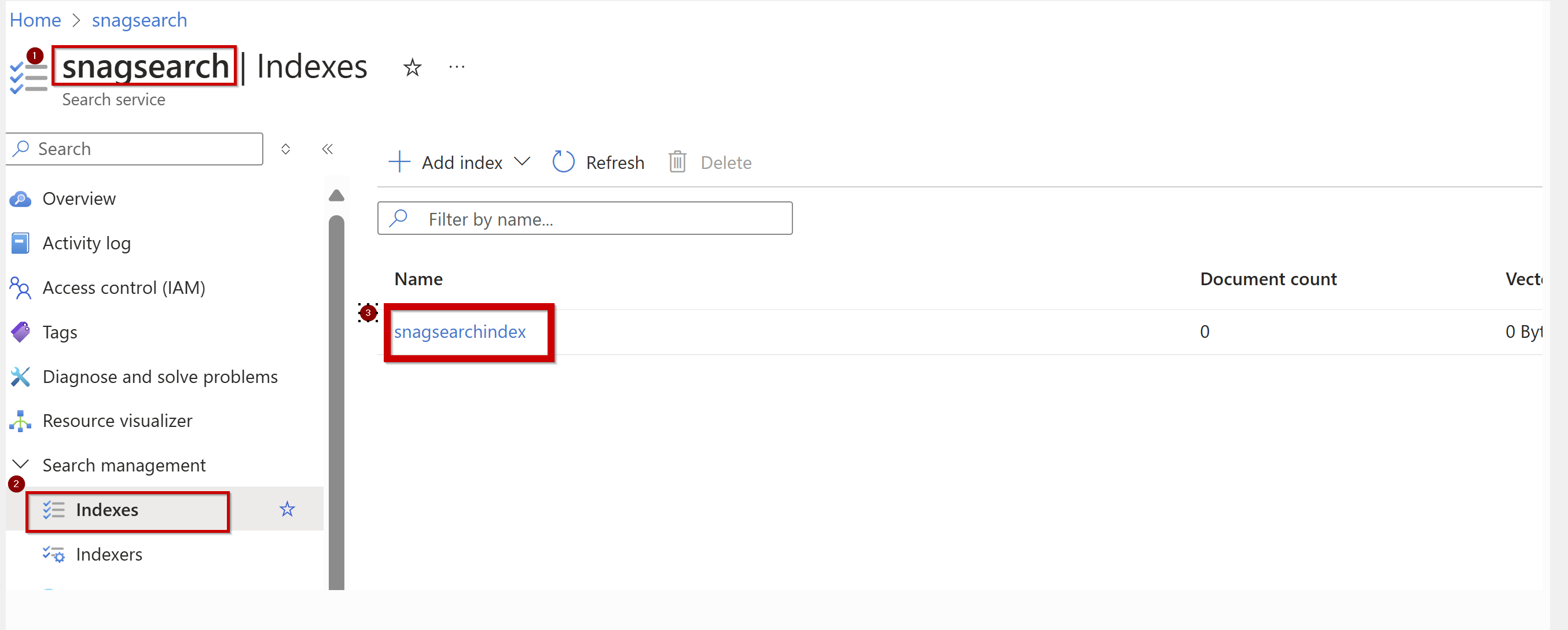 How to delete AI Search index, cannot locate in Azure portal