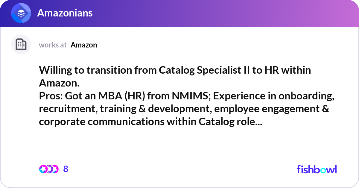 Willing to transition from Catalog Specialist II t... Fishbowl