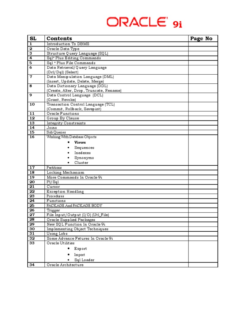 Oracle 9i Notes PDF Relational Database Databases