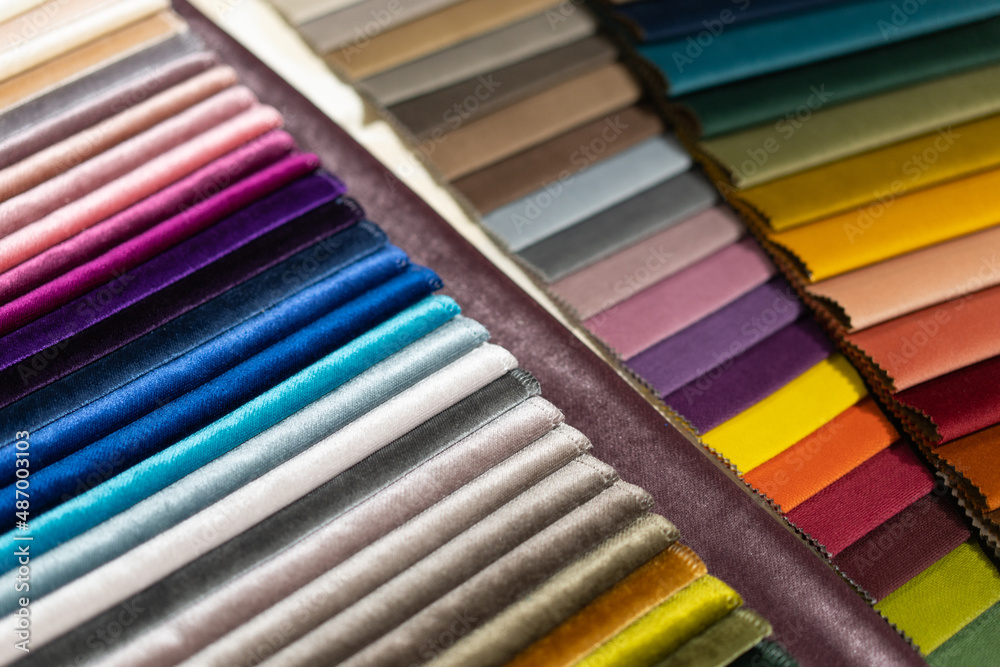Tissue catalog. Catalog of multicolored fabric samples. Textile