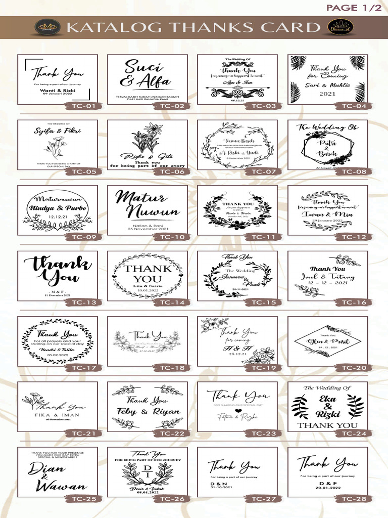 Jual KATALOG LENGKAP DESAIN KARTU UCAPAN TERIMAKASIH THANK YOU CARD