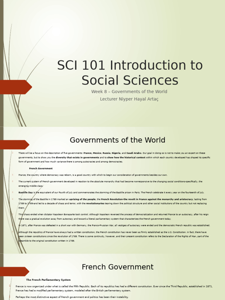 SCI 101 Week 8 Governments of The World PDF Nigeria Soviet Union