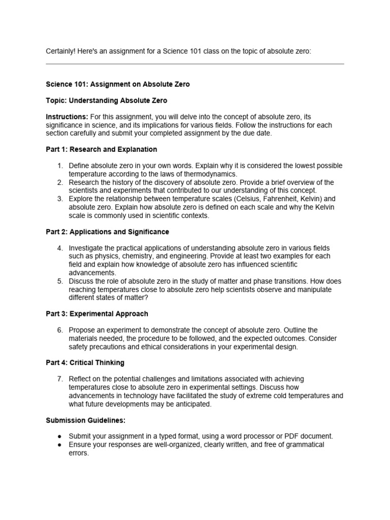 Sci 101 Absolute Zero PDF Temperature Science