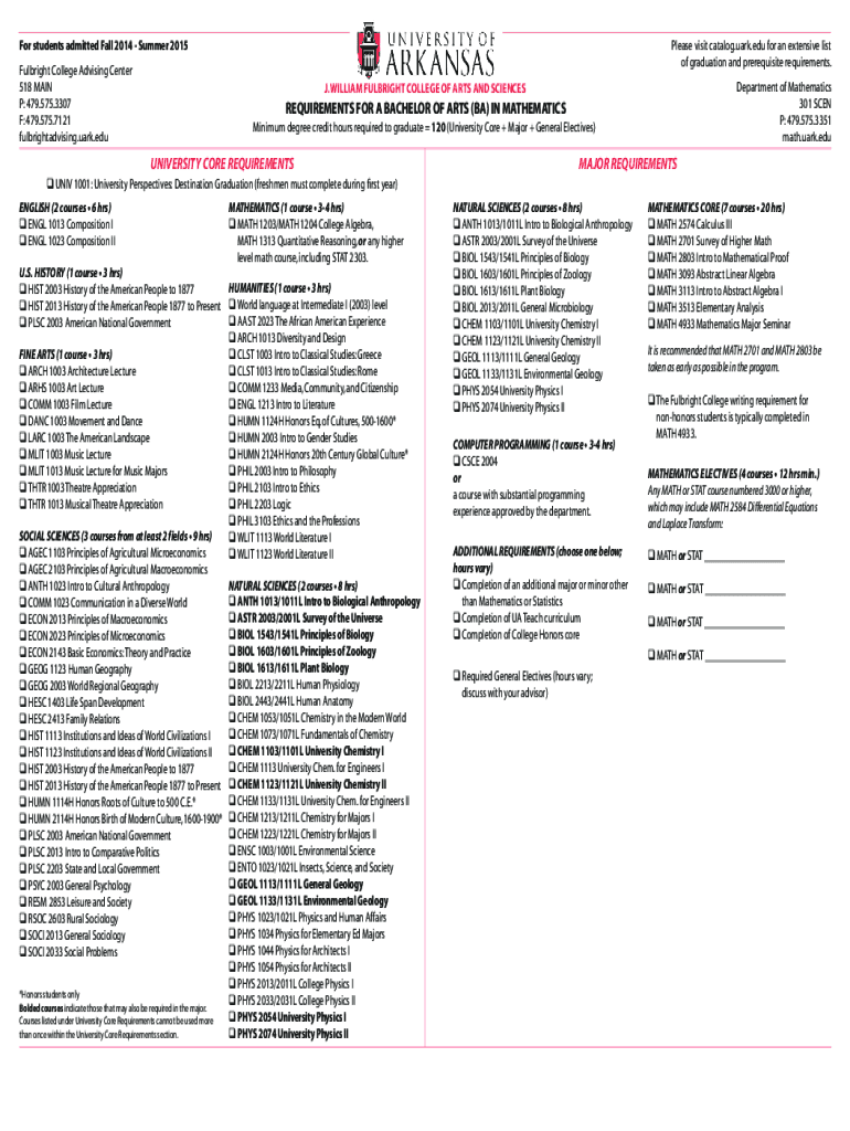 Fillable Online fulbright uark CATALOG YEAR Fulbright College