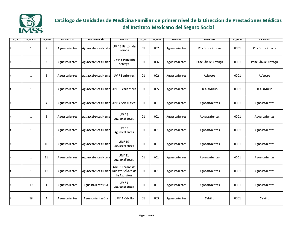 Catalogo UMF ,jn ID_DEL ID_SUBDEL ID_UMF DELEGACIÓN SUBDELEGACIÓN