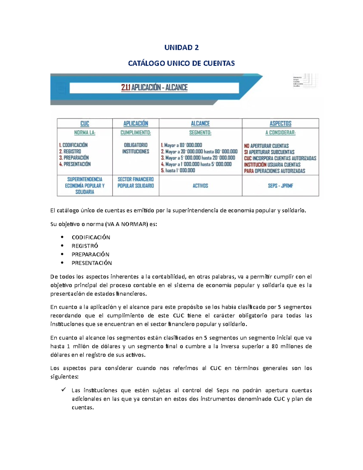 Unidad 2 UNIDAD 2 CATÁLOGO UNICO DE CUENTAS El catálogo único de