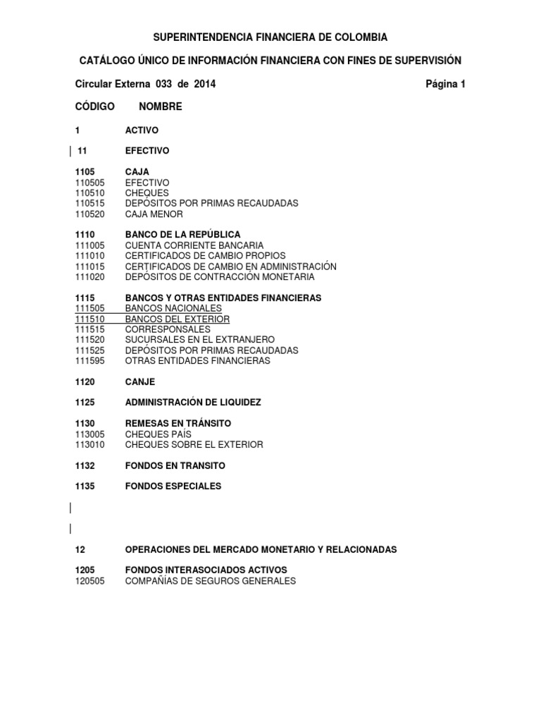 Catalogo unico de cuentas para uso de las entidades del sistema finan…