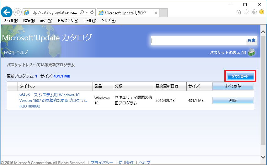 Microsoft Update カタログから単体ファイルをダウンロードする