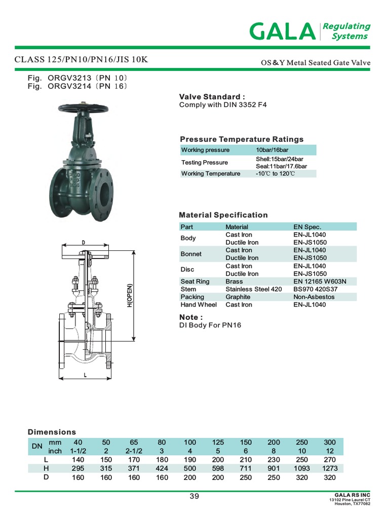 Katalog GALA Gate Valve OSNY PDF Valve Chemistry
